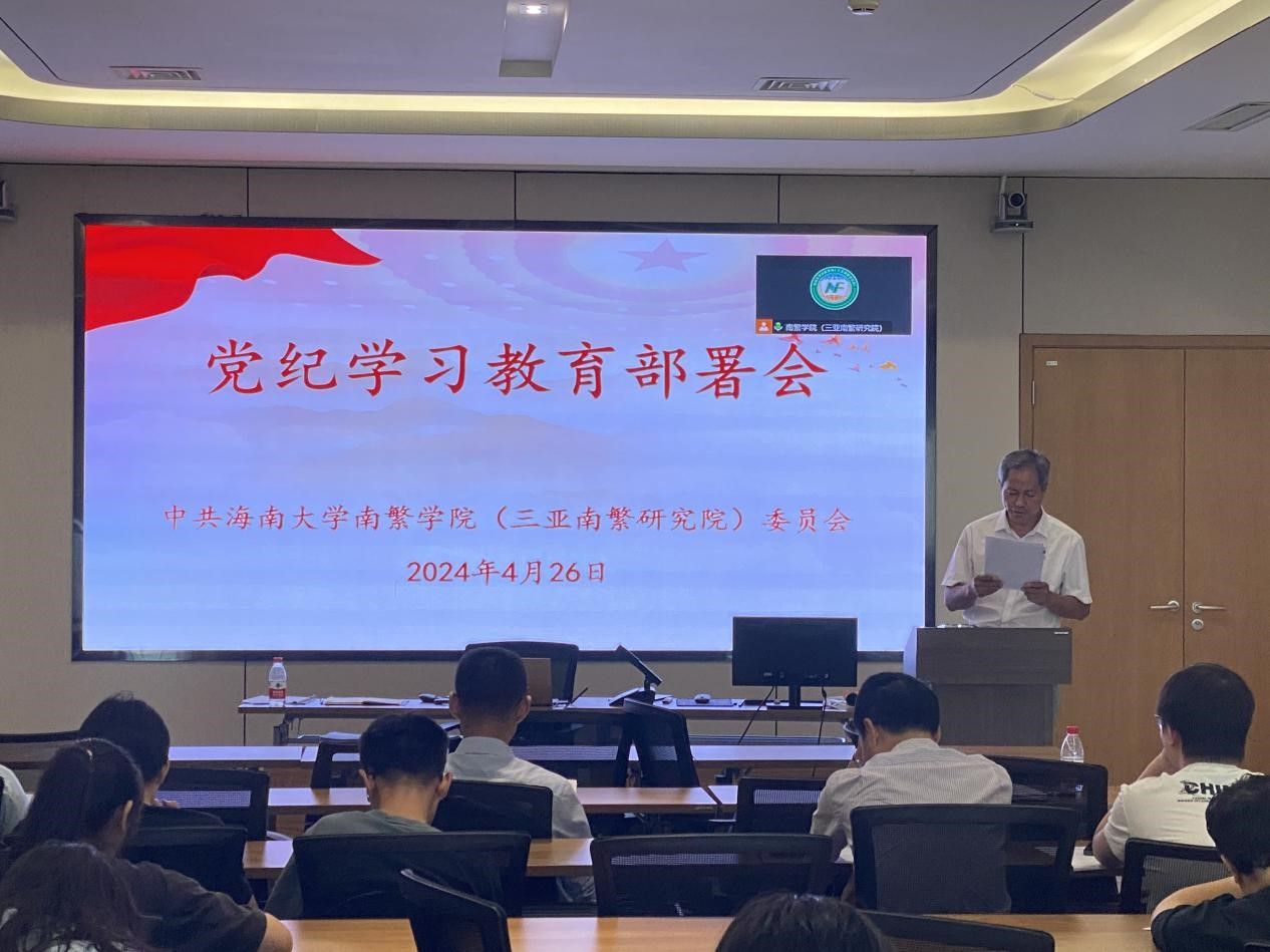 4月26日下午,包子漫画 (三亚南繁研究院)分别召开党委会议和党员大会,启动部署党纪学习教育工作。院党委书记黄东益主持会议。