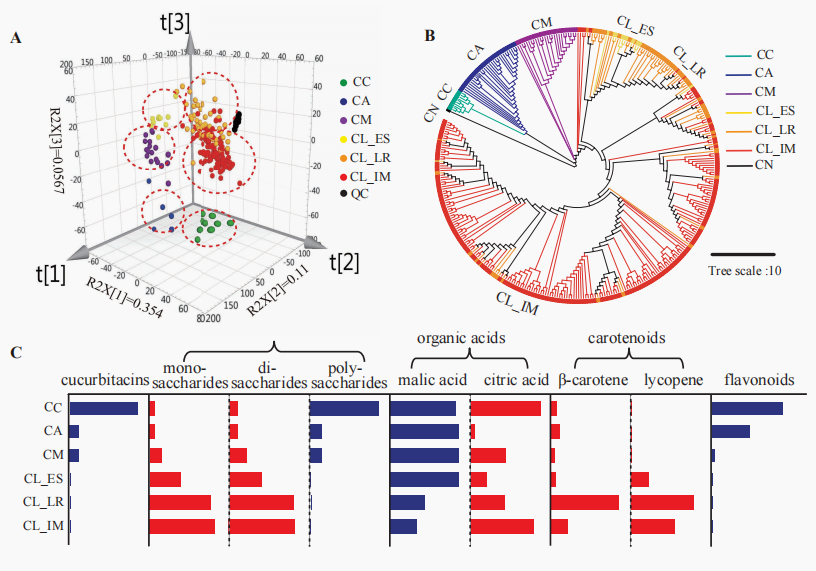 西瓜群体系统发育树和代谢图谱分析