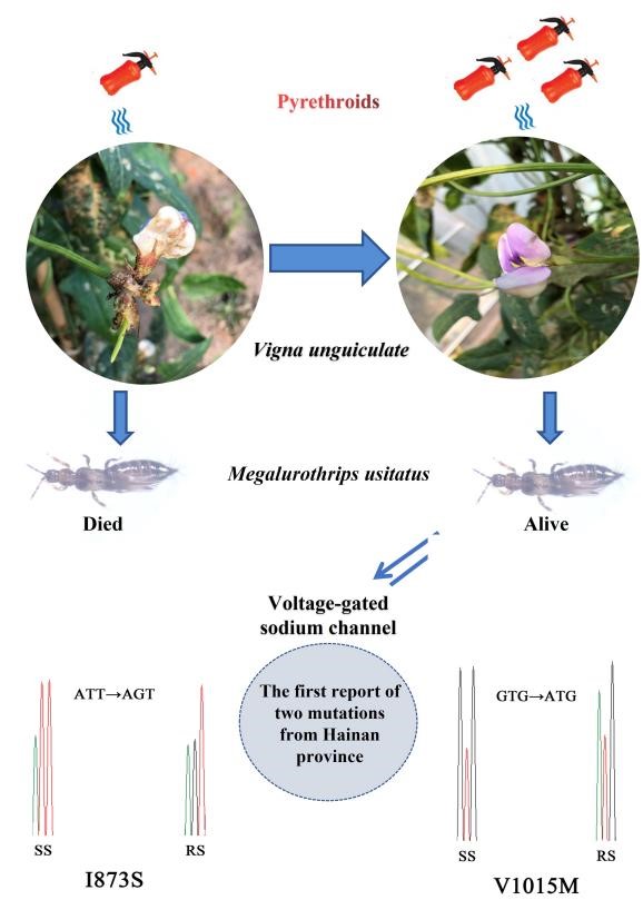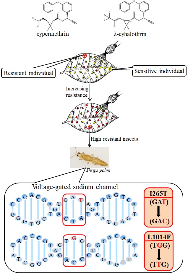 2023年5月9日,吴少英教授团队在Archives of Insect Biochemistry and Physiology在线发表了题为“Double sodium channel mutation, I265T/L1014F, is possibly related to pyrethroid-resistant inThrips palmi”的研究论文,该研究在瓜蓟马田间种群钠离子通道鉴定到双突变位点I265T/L1014F,推测双突变位点是造成瓜蓟马田间种群抗拟除虫菊酯的原因。