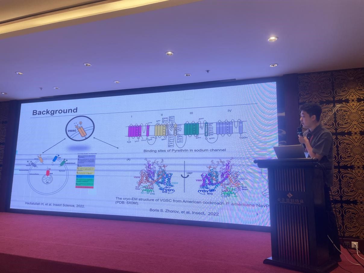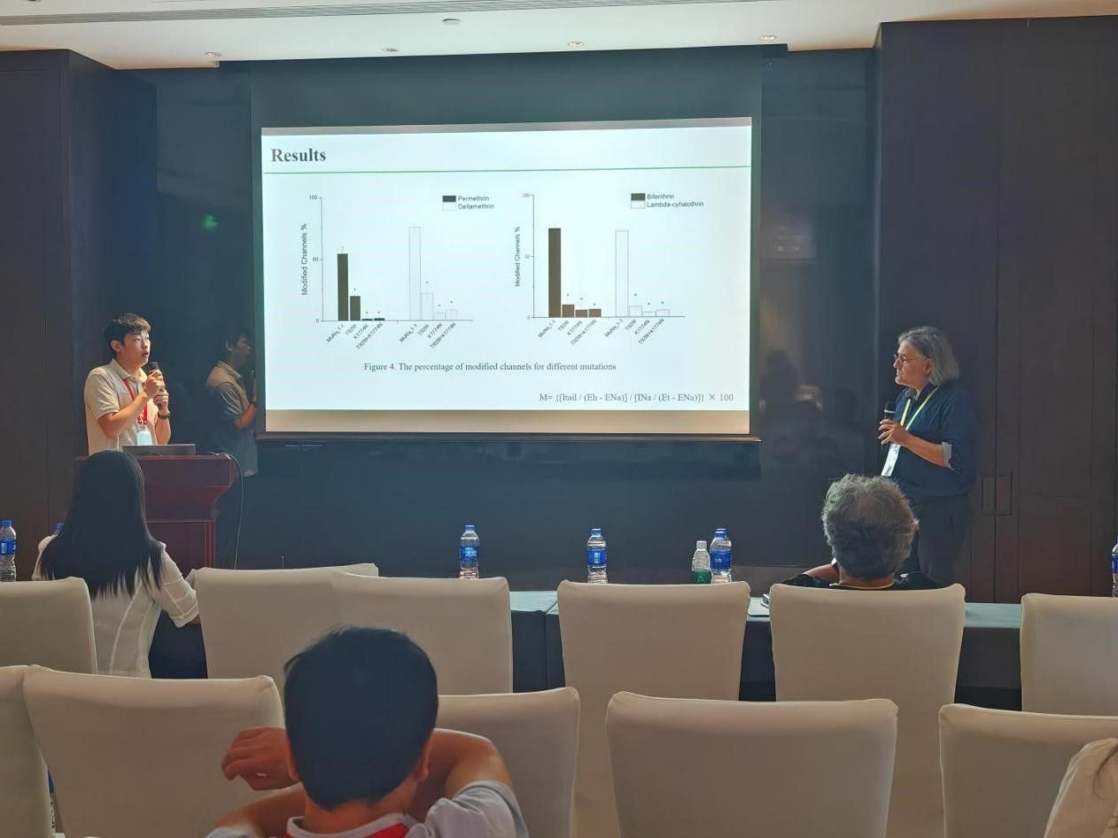 同时,吴少英教授团队将近期由教师李芬、张坤,博士刘凯扬、王力奎、金海峰涉及害虫神经电压门控钠通道、乙酰胆碱受体等抗性突变检测及功能验证的机理研究,能量转化膜控制害虫等绿色防控技术新方法等成果进行了汇报,研究内容丰富,报告逻辑清晰,得到了在场专家和同行的一致认可,其中博士研究生刘凯扬获得“Best Oral Presentation”奖。