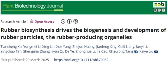 (三亚南繁研究院)唐朝荣研究员领衔的产胶生物学实验室在Plant Biotechnology Journal期刊(IF:11.2,中科院1区TOP)发表最新研究成果 “Rubber biosynthesis drives the biogenesis and development of rubber particles, the rubber‐producing organelles” ,该研究在橡胶草中揭示了产胶植物橡胶粒子起始和发育的分子机制,为阐明天然橡胶生物合成机制和培育高产橡胶草新种质奠定了基础。