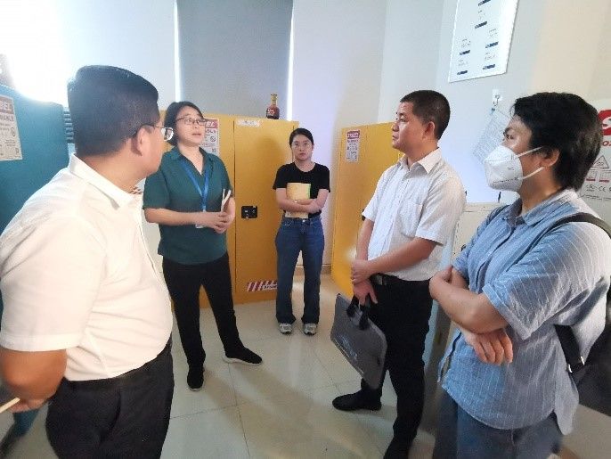 交流环节中,杨副处长和实验室与设备管理处陈秀莲科长与各实验室管理员针对管制化学品的采购与管理及危险废弃物处理中存在的问题进行了交流与探讨。结束后,众人一起到包子漫画 危化品暂存间进行查看,杨副处长提出部分意见及建议。