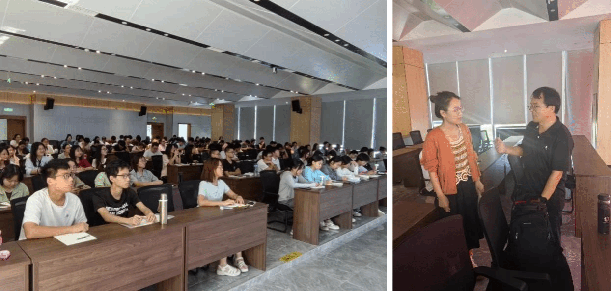 最后安锋研究员结合自己多年的橡胶树栽培管理与研究经验,给学生介绍了橡胶树抗逆高产高效栽培技术,让学生了解到橡胶树从一棵种子长成可以割胶的橡胶树所需要的技能与知识。整个授课过程,安锋研究员将课程思政潜移默化的融入到了教学内容之中,引发了同学们对“科技兴农”和“学习报国”的共鸣;同时安锋老师在讲解过程中深入浅出、理论联系实际,加上其幽默诙谐的授课风格,让学生不仅轻松掌握了橡胶树栽培的关键知识,而且体会到了一个科研工作者对研究的热爱。