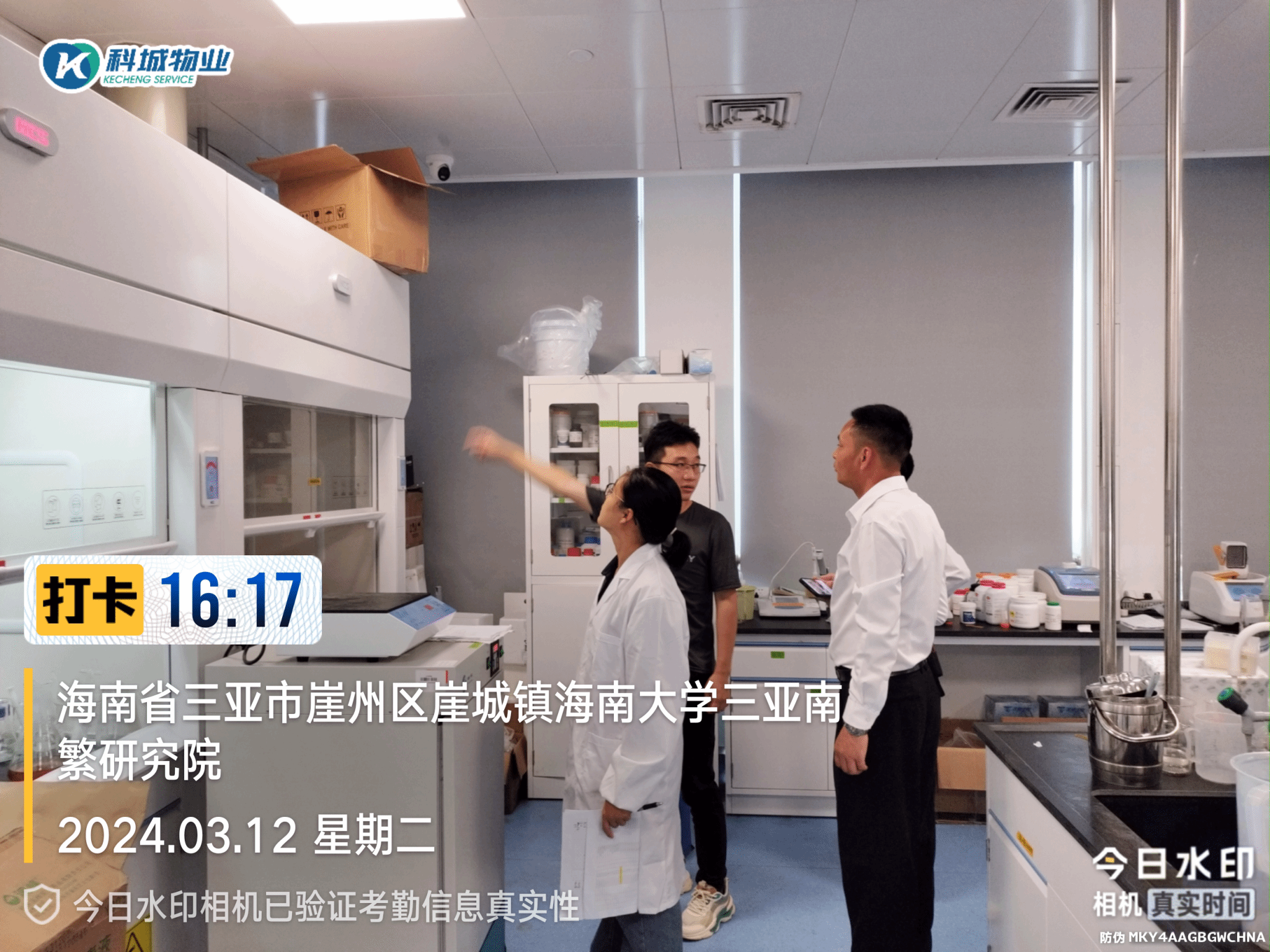 为做好实验室安全工作,给师生提供安全的试验环境,3月12日,包子漫画 实验室管理员联合崖州湾科教园管委会、三亚科城物业中心开展实验室安全常态化月检工作,此次重点开展实验室消防安全隐患集中排查,对易燃物品堆放、违规拉电线、插排落地、杂物遮挡消防设施等消防安全隐患进行纠正。