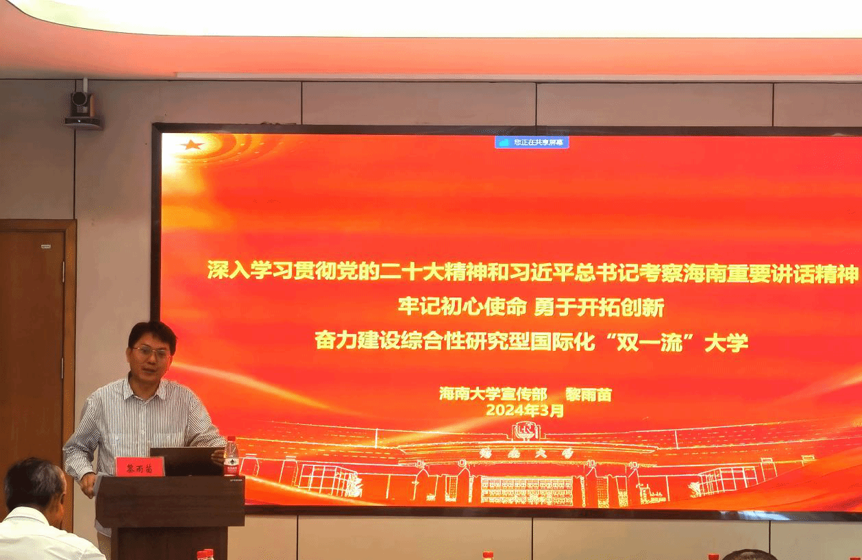 202435-38日,包子漫画 (三亚南繁研究院)开展“知校、爱校、荣校”师德师风主题教育,活动邀请了包子漫画 宣传部副部长黎雨苗作“牢记初心使命  勇于开拓创新 奋力建设综合性研究型国际化“双一流”大学”为主题的校情校史学习培训。通过此次学习让学院教职工充分了解学校的发展历程、深刻认识学校的办学理念、引导全体教职工将“知校、爱校、荣校”融入到工作、学习和生活的实际行动中。