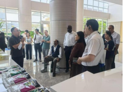 访问期间,学院科研团队重点展示了多项立足南繁、服务热区的研究成果,涵盖水稻、橡胶、甘薯、油茶、大豆等作物种质资源创新与遗传育种研究,以及南繁育种全程机械化科研试验成果和智能化育种平台建设进展。代表团还现场品鉴了学院选育的哈密瓜、西瓜、甘薯、鲜食大豆等品种,对品种的口感、品质及市场推广潜力给予高度评价。