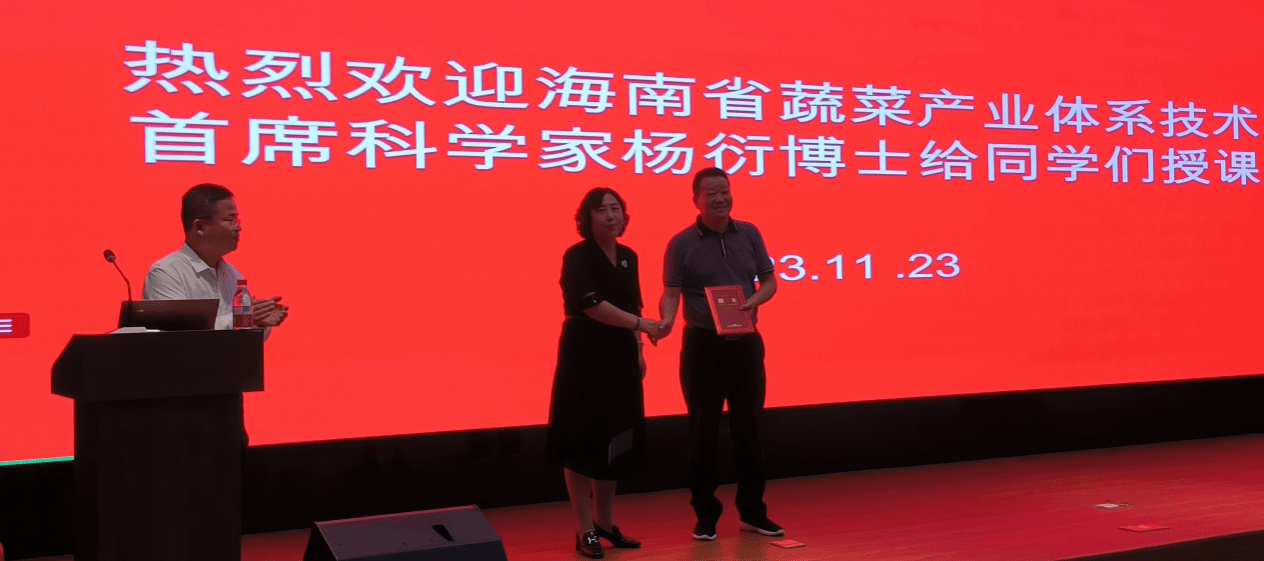 杨衍研究员以“我国蔬菜产销现状战略思考与海南实践”为主题,主要讲授了热带蔬菜产业的发展概况,针对海南省蔬菜卡脖子难题,从新品种选育、栽培技术研发方向提出解决问题的方案和措施。