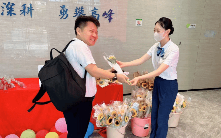 (三亚南繁研究院)行政、物业服务人员,带着院领导们最诚挚的心意和一束束鲜艳欲滴的鲜花,为辛勤耕耘在教育、科研一线的教师们送上了节日的祝福。