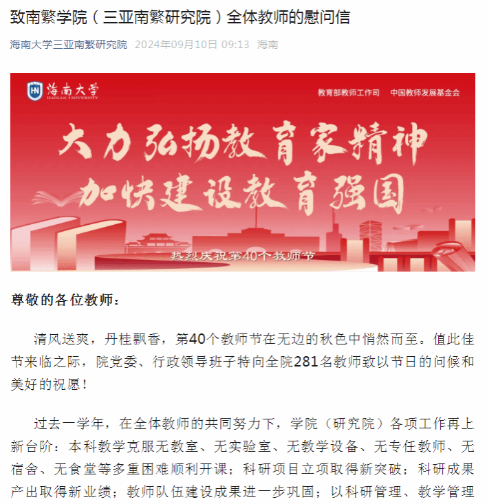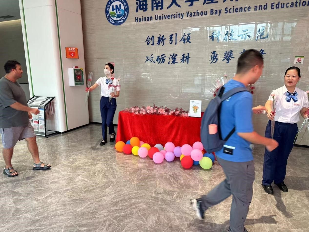 (三亚南繁研究院)教师们陆续步入校园,迎接他们的不仅是熟悉的校园和面孔,更有院领导班子精心准备的节日问候。