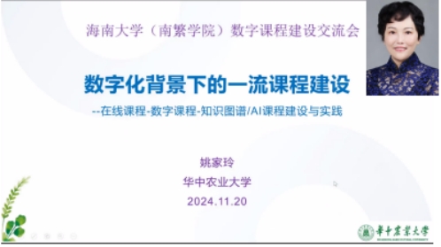 特邀湖北省教学名师、华中农业大学姚家玲教授作了题为“数字化背景下一流课程建设”的线上培训,全体专任教师参加此次报告,陈艳丽副院长主持。
