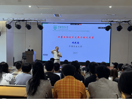 课上,刘庆昌教授以时间为脉络,系统梳理甘薯生物技术的发展演进,从基础研究到应用实践,层层深入。重点聚焦组织培养、分子标记、基因编辑三大关键技术,结合自身研究经验与行业案例,详细阐述各技术的研究突破、应用场景及实际成效;同时,针对当前甘薯产业面临的抗逆性提升、品质优化、产业化推进等现实挑战,他结合基因组学、合成生物学等前沿技术趋势,深入探讨技术融合应用的潜力,为在场师生提供了甘薯生物技术研究的全新思路,为推动甘薯产业高质量发展指明方向。