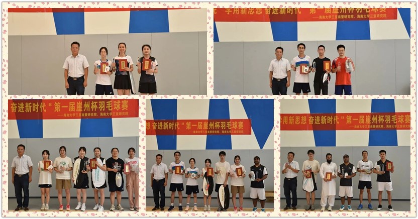 崖州书院(筹)举办的“学用新思想,奋进新时代”第一届崖州杯羽毛球比赛在激烈的角逐中落下了帷幕。赛场上选手们展现出了极高的技术水平和良好的竞技态度,吸引了众多观众的关注。最终,在男单、女单、男子双打、女子双打和混合双打中各评出了三名优秀选手。