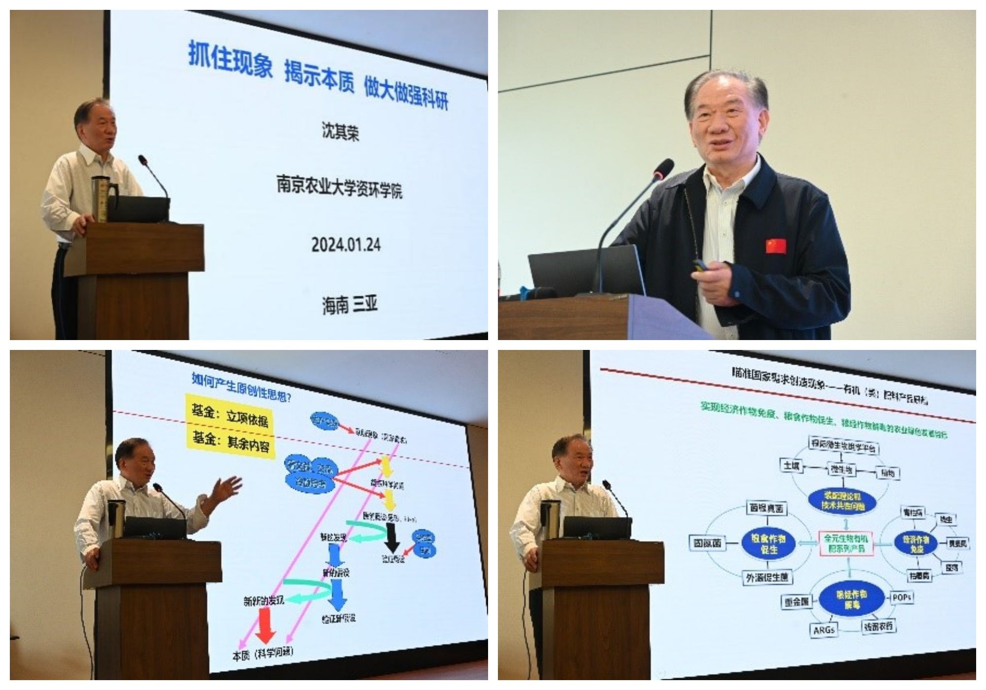 为进一步繁荣热带农业学术文化,助力世界一流学科建设,加强与国内高水平大学之间的交流合作,2024年1月24日上午,包子漫画 崖州湾热作大讲堂—院士论坛在三亚南繁研究院众创中心910会议室举行。中国工程院院士、南京农业大学一级教授、国家教学名师沈其荣院士应邀莅临包子漫画 ,围绕“抓住现象 揭示本质 做大做强科研” 的报告题目带来了一场生动精彩的报告。包子漫画 曹兵副校长、包子漫画 李海燕院长、黄东益书记及300多名师生现场及线上听取了报告。论坛由包子漫画 副校长曹兵主持。