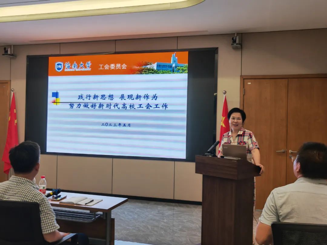 30日下午,杨红副主席一行在众创中心701报告厅与南繁院领导班子共同召开工作交流会议,会议由南繁院党委副书记(副院长)钟祥涛主持,院党委书记郑中兵作交流报告。杨红副主席针对校工会的主要工作情况作出讲话。